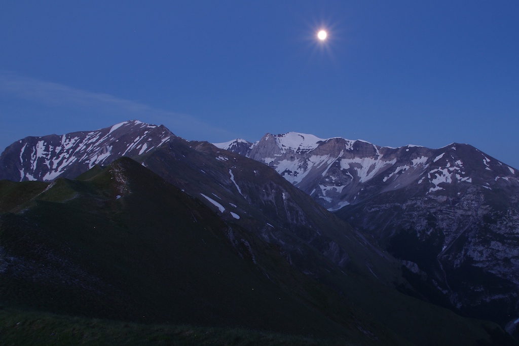 早朝3時に歩き出して、東の空が明るくなる5時には登頂、稜線で2時間ほどねばって写真を撮りました。途中で眠くなったらこまるんで、マットと寝袋もかついで登りました。