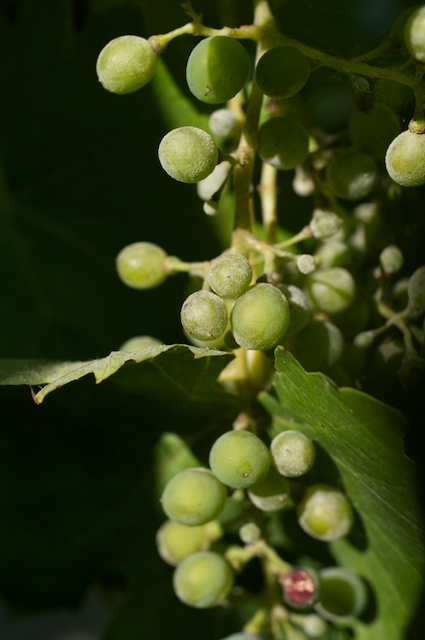 フルーツといえば、洋梨、ブドウ、カキ、プルーンもあります。このブドウはもう何十年も生えっぱなし。根元にちょうど水道の蛇口があるため、漏れた水で勝手に育ってます。