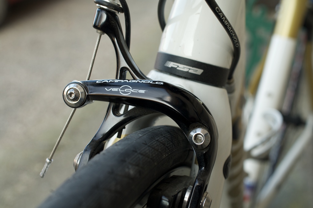 そうそう、この自転車に決めた理由のひとつが、カンパニョーロのパーツで組まれていることでした(ヴェローチェ・グレード ロゴから見るに2011モデルらしい)。